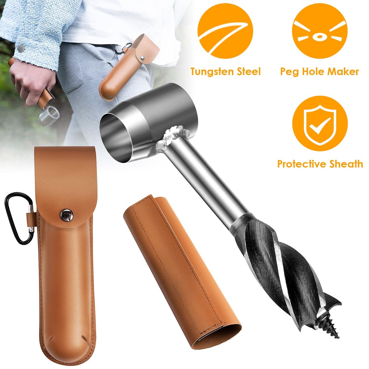 *Peg Maker*:It’s designed to make a peg that fits snugly in the auger’s hole. Hammer the peg cutter into the branch. Before usage,wrap the auger with the protective sheath to protect your hands.